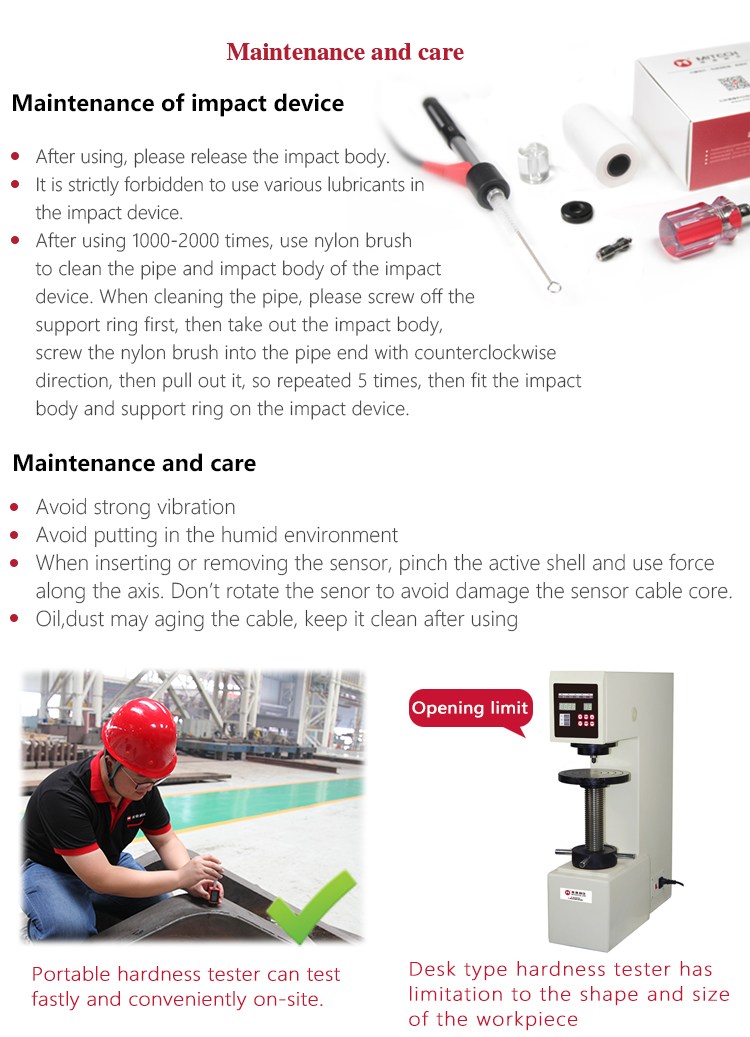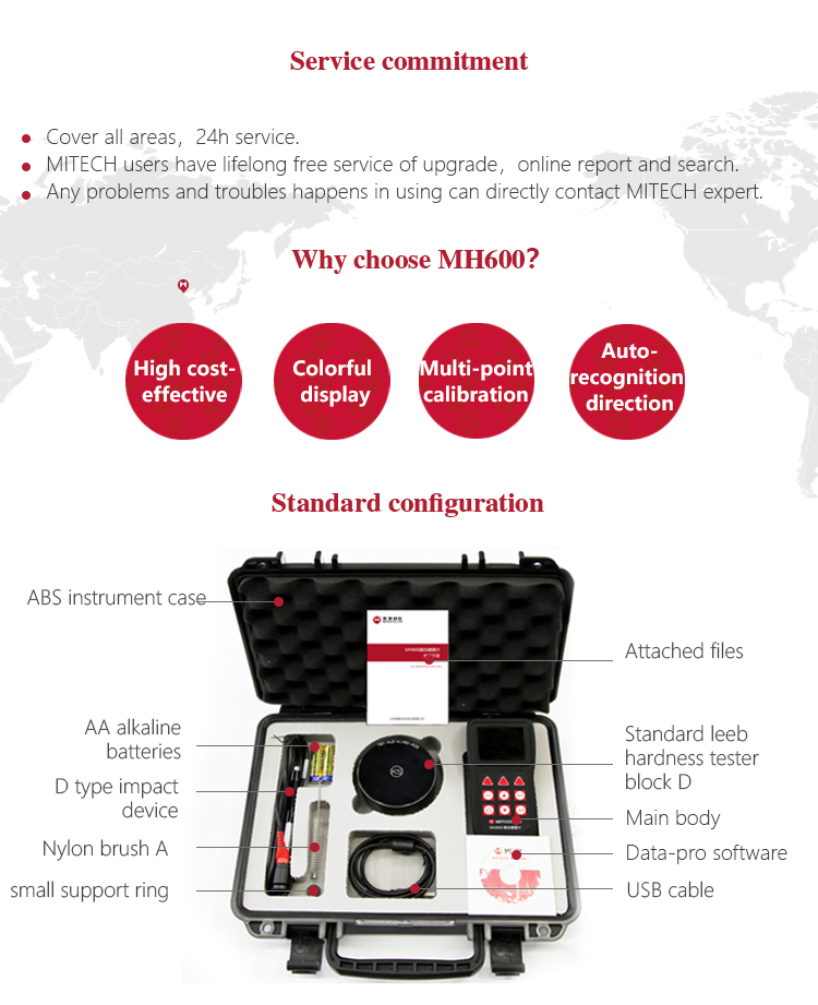 | Mitech Series portable leeb hardness testers with customized attached files including product certificate, warranty card, product manual, packing list. The attached files adopt the special printed paper. The manual is with graphic design, beautiful, easy to understand, easy to save for a long time. Note: The electronic version of Mitech attached files can be downloaded from www.jiu1915.cn. |