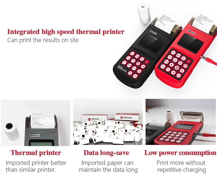 Integrated thermal printer with the instrument as a whole, and quiet operation, fast print speeds, you can print the test report on-site.