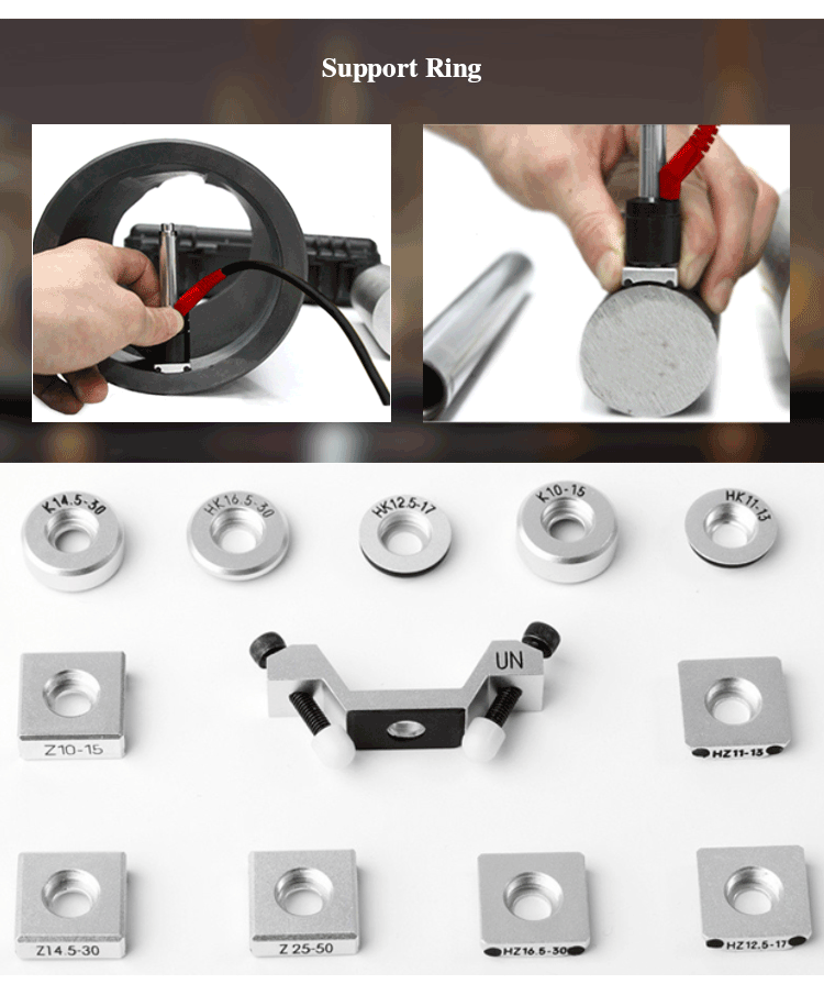 | Small support ring is the standard configuration used for curved workpieces.If the measured surface radius R is less than 30mm, the small support ring should be used during measurement. It can make the tested workpiece stable, the impact body and the workpiece well connected to ensure the accuracy of the hardness value of the tested workpiece.If the workpiece with special surface or others, it needs to use the specific support ring. | |