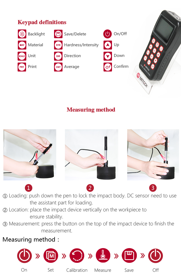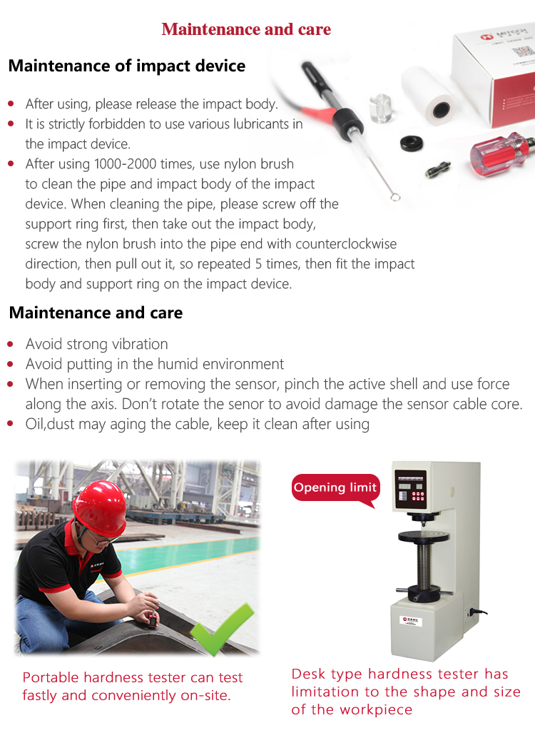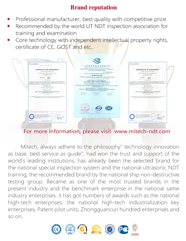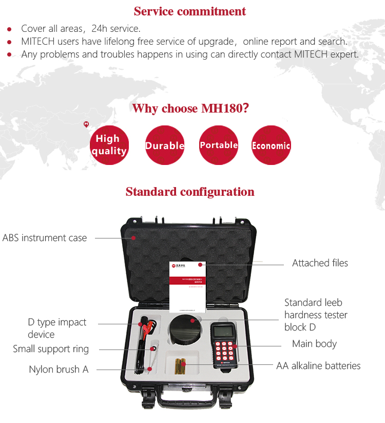 | Mitech Series portable leeb hardness testers with customized attached files including product certificate, warranty card, product manual, packing list. The attached files adopt the special printed paper. The manual is with graphic design, beautiful, easy to understand, easy to save for a long time. Note: The electronic version of Mitech attached files can be downloaded from www.jiu1915.cn. |