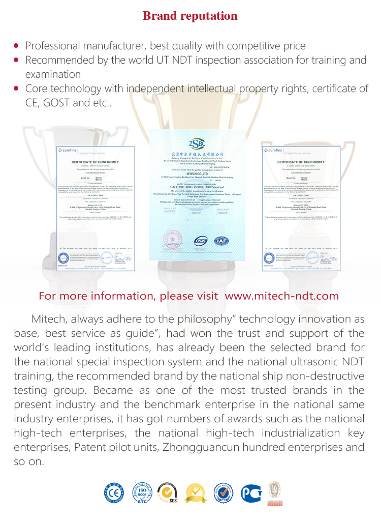 | Mitech Series portable leeb hardness testers with customized attached files including product certificate, warranty card, product manual, packing list. The attached files adopt the special printed paper. The manual is with graphic design, beautiful, easy to understand, easy to save for a long time. Note: The electronic version of Mitech attached files can be downloaded from www.jiu1915.cn. |