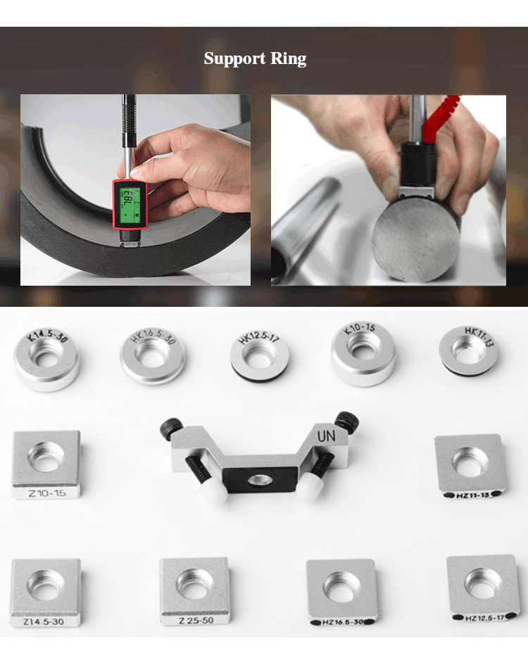 | Small support ring is the standard configuration used for curved workpieces.If the measured surface radius R is less than 30mm, the small support ring should be used during measurement. It can make the tested workpiece stable, the impact body and the workpiece well connected to ensure the accuracy of the hardness value of the tested workpiece.If the workpiece with special surface or others, it needs to use the specific support ring. | |