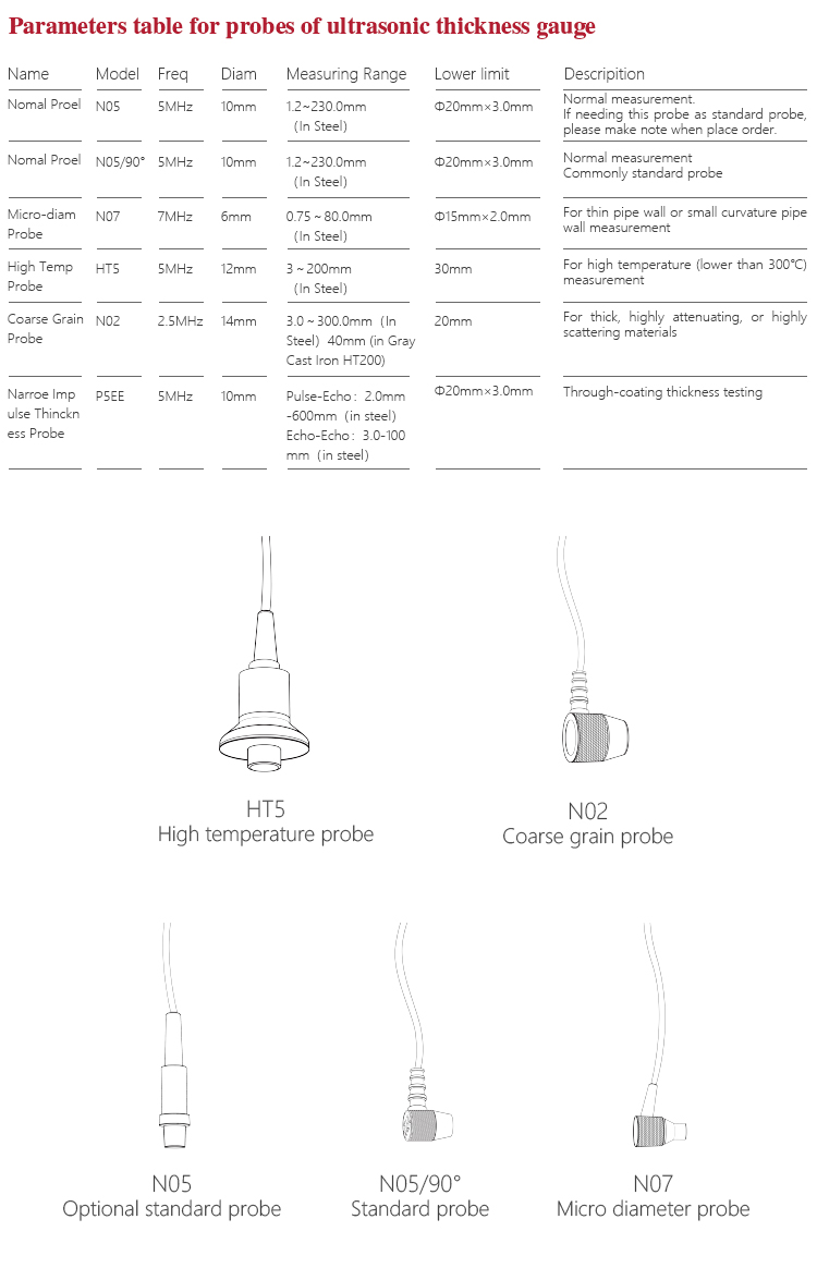 | Probe Diameter | Standard N05 is10MM、Probe N07 is 6MM、Probe HT5 is12MM、Probe N02 is12MM |