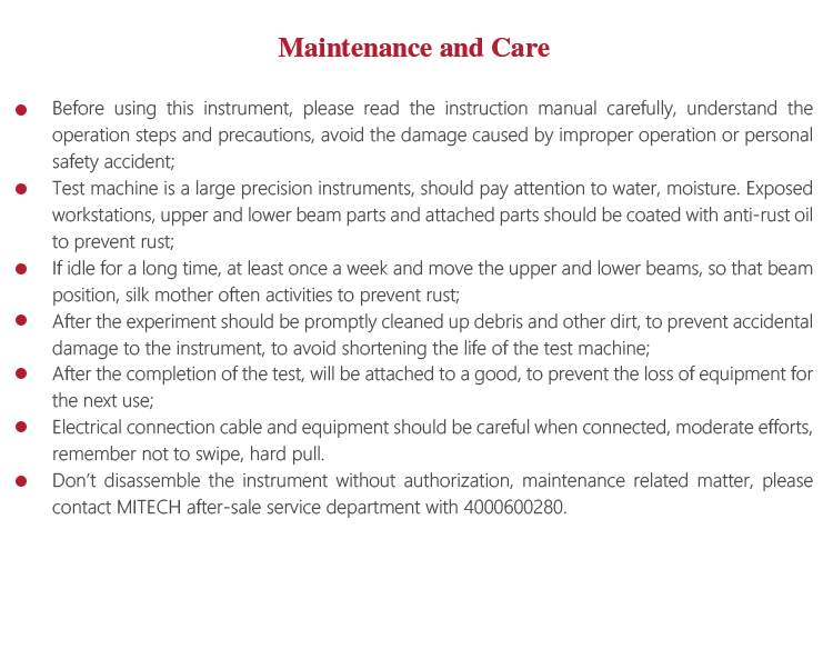 l Don’t disassemble the instrument without authorization, maintenance related matter, please contact MITECH after-sale service department with 4000600280.