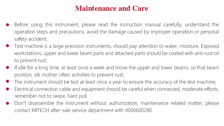 l Don’t disassemble the instrument without authorization, maintenance related matter, please contact MITECH after-sale