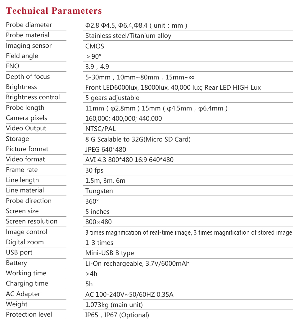 | Probe diameter | ?2.8 ?4.5, ?6.4(unit:mm) |