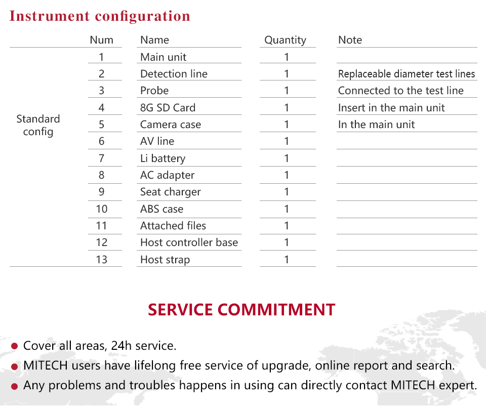 l After use, do not soak the product, the soft cloth can be used to clean the probe and mirror host, and then into the ABS case, so as not to cause corrosion or damage to the instrument;