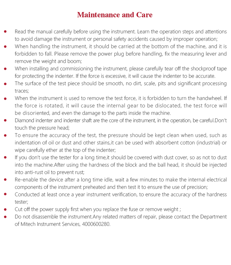If you don’t use the tester for a long time,it should be covered with dust cover, so as not to dust into the machine.After using the hardness of the block and the ball head, it should be injected into anti-rust oil to prevent rust;