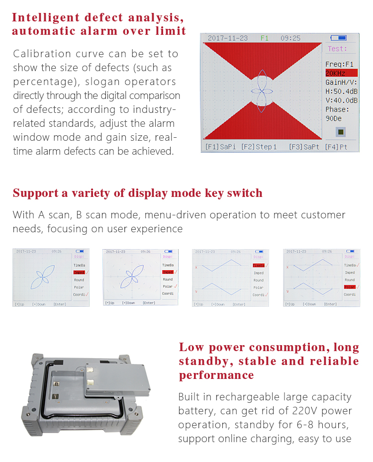 l Using eddy current impedance plane and time base scan display technology, real-time multi-window display with the same