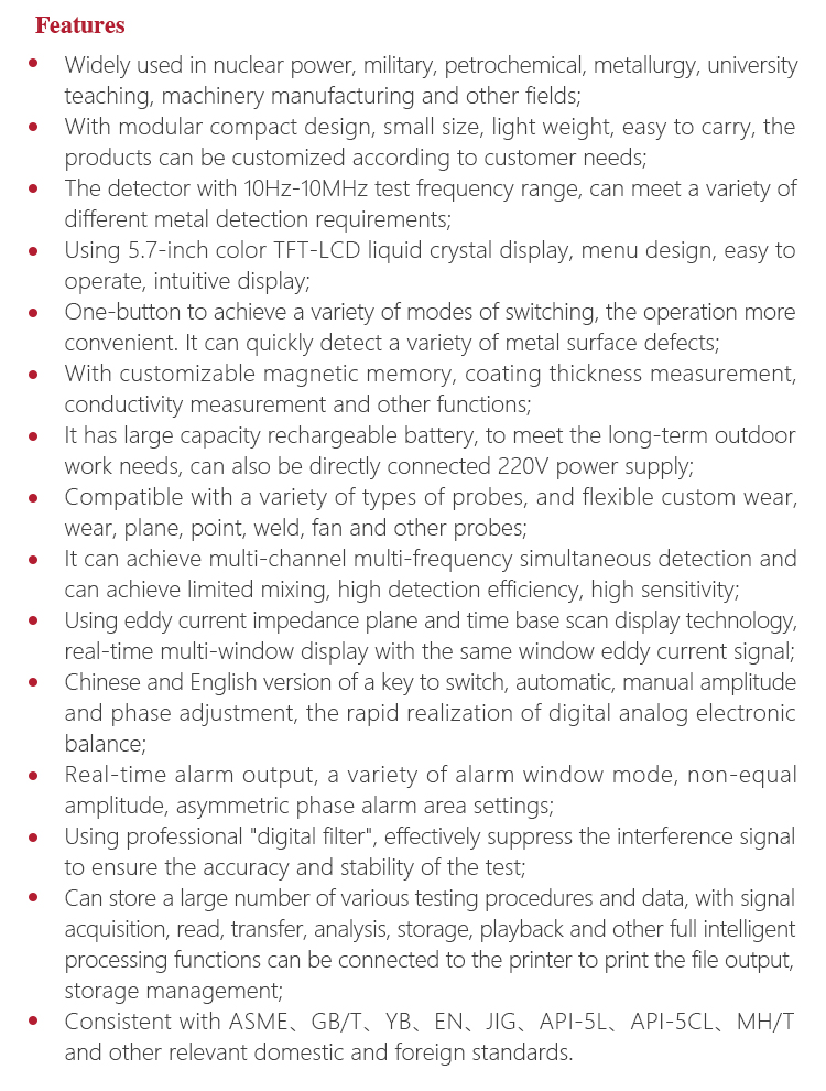 Function & applicationl All kinds of metal pipe rod wire high-speed non-destructive testing (according to user needs customized package of non-