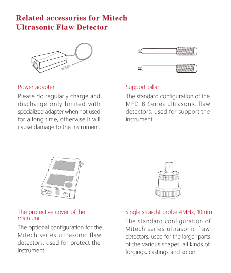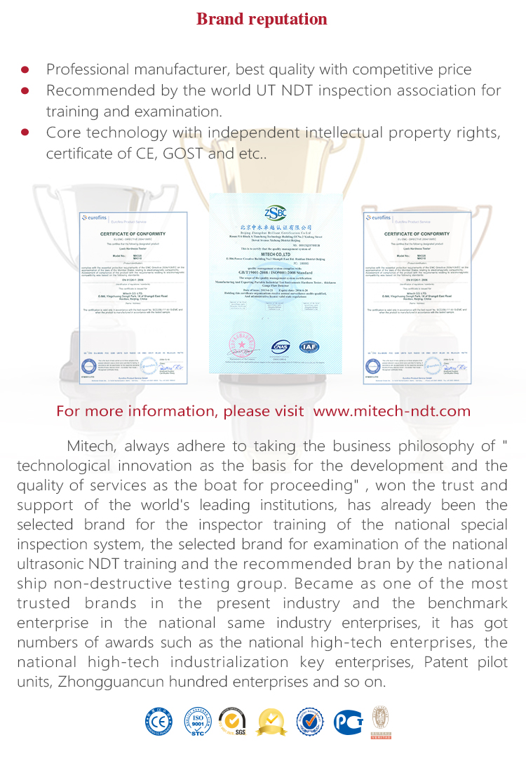 | The Mitechs Ultrasonic flaw detector with customized packing documents has included product certificate, warranty card, product manual and packing list. The packing documents had used the special printed paper. The manual is with graphic design, beautiful, easy to understand, easy to save for a long time. Note: The electronic version of the packing documents for Mitech series products can be downloaded from www.jiu1915.cn. |