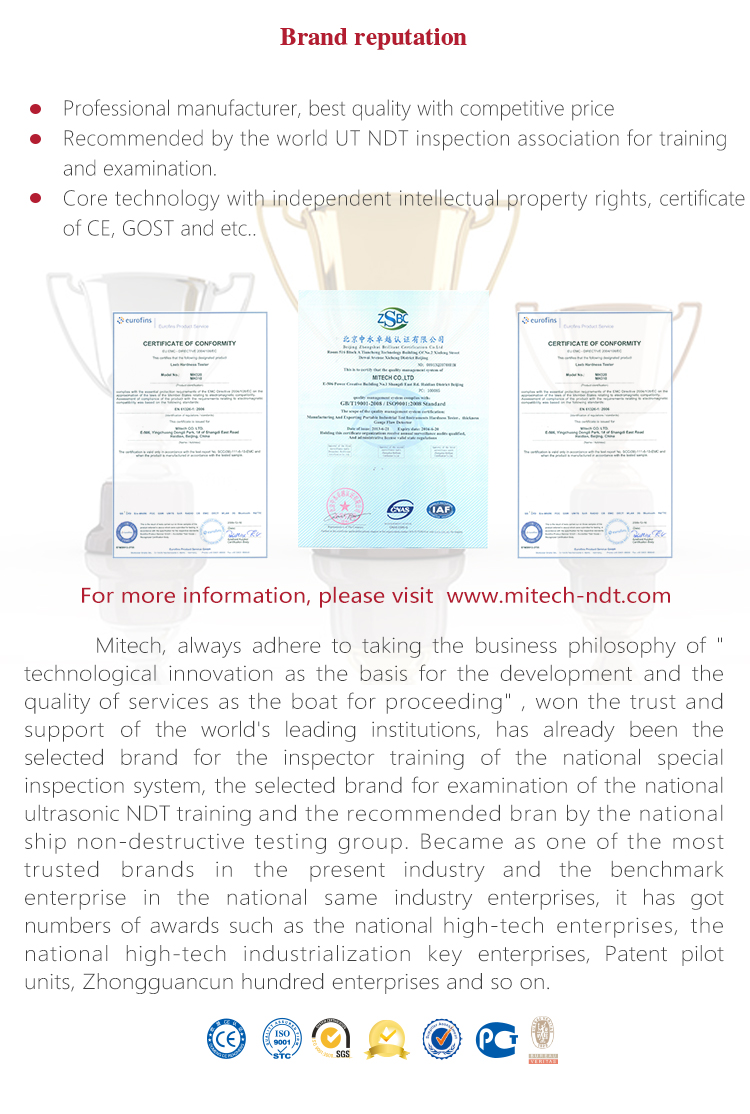 | The Mitechs Ultrasonic flaw detector with customized packing documents has included product certificate, warranty card, product manual and packing list. The packing documents had used the special printed paper. The manual is with graphic design, beautiful, easy to understand, easy to save for a long time. Note: The electronic version of the packing documents for Mitech series products can be downloaded from www.jiu1915.cn. |