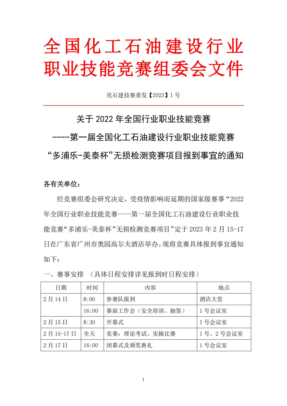 首屆“多浦樂-美泰杯”全國石油化工建設行業(yè)無損檢測職業(yè)技能競賽將于2023年2月15日-17日在羊城廣州拉開帷幕。