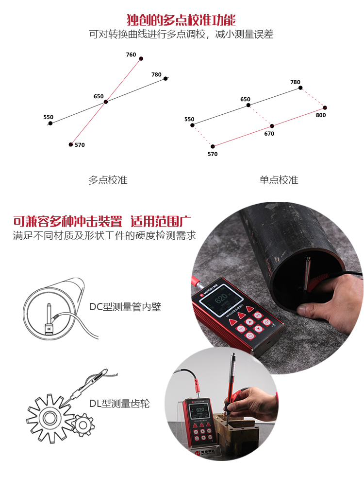 內置里氏硬度換算功能,可實現(xiàn)HLD值與HLC、HLG、HLDL、HLD+15之間的相互換算,方便儀器校準和測值換算。