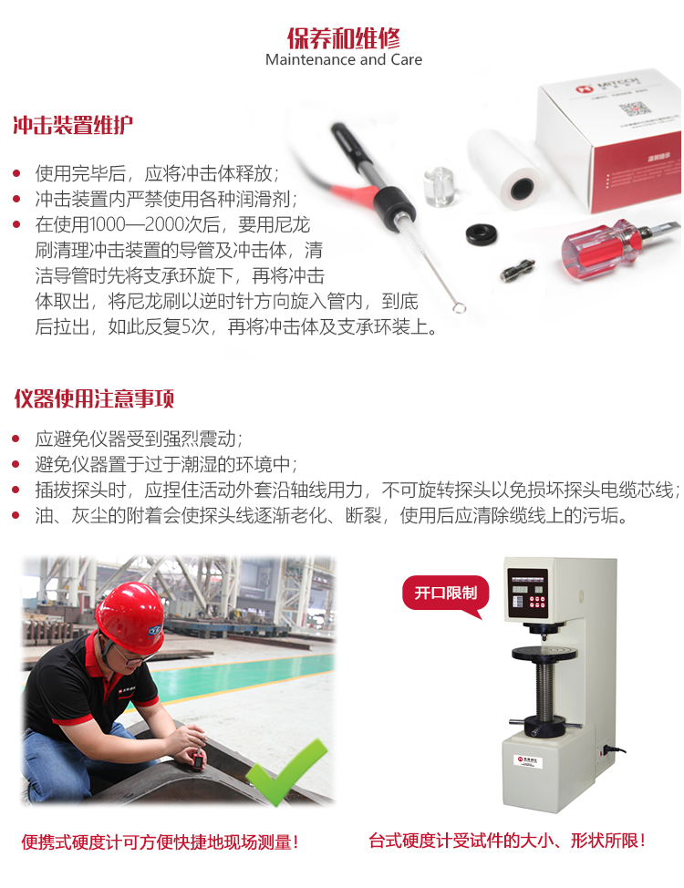 只有重大于5kg的重型試樣,無需支承即可直接測量。便攜式里氏硬度計對于被測工件 厚度的要求較為嚴格,工件最小厚
