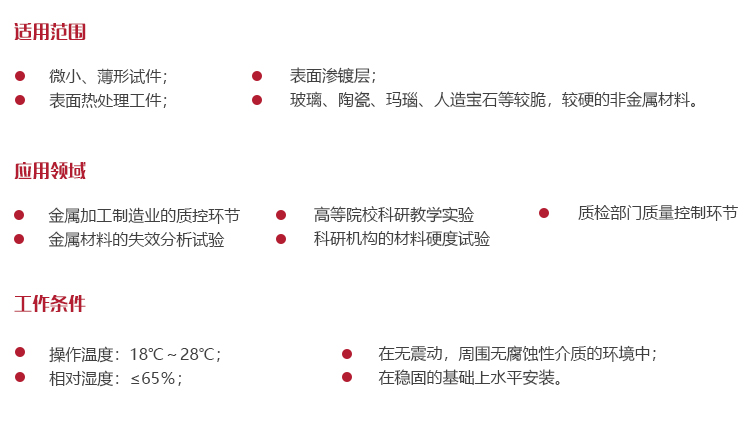 ?廣泛適用于微小試件、薄形試件、熱處理工件等試樣的表面(滲鍍層)的維氏硬度試驗(yàn),可滿足科研機(jī)構(gòu)、精密的加工制造業(yè)及質(zhì)檢部門等材料試驗(yàn)的需求;
