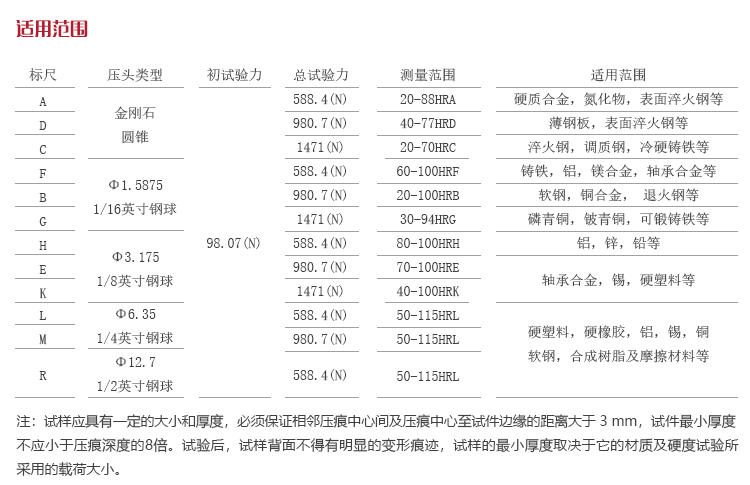 | 測量范圍 | HRA:20-88、HRB:20-100、HRC:20-70 |