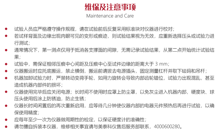 儀器的保養(yǎng)與維護(hù)?試驗(yàn)人員應(yīng)嚴(yán)格遵守操作規(guī)程,請(qǐng)?jiān)谠囼?yàn)前后反復(fù)采用標(biāo)準(zhǔn)塊對(duì)儀器進(jìn)行校對(duì);
