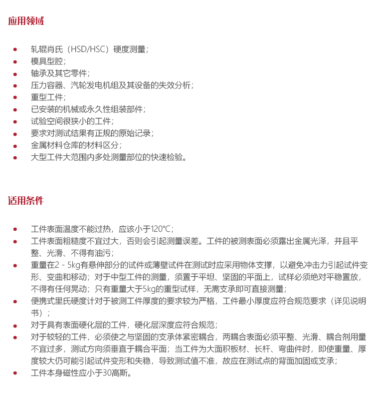 l 便攜式里氏硬度計(jì)對(duì)于被測(cè)工件厚度的要求較為嚴(yán)格,工件最小厚度應(yīng)符合規(guī)范要求(詳見(jiàn)說(shuō)明書(shū))。