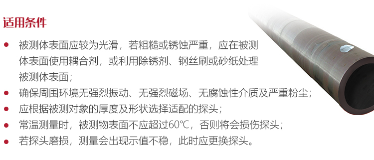 若被測(cè)體表面有大量耦合劑時(shí),當(dāng)探頭離開被測(cè)體表面時(shí),耦合劑會(huì)引起誤測(cè)。因此測(cè)量結(jié)束時(shí),應(yīng)迅速將探頭移開被測(cè)體表面。