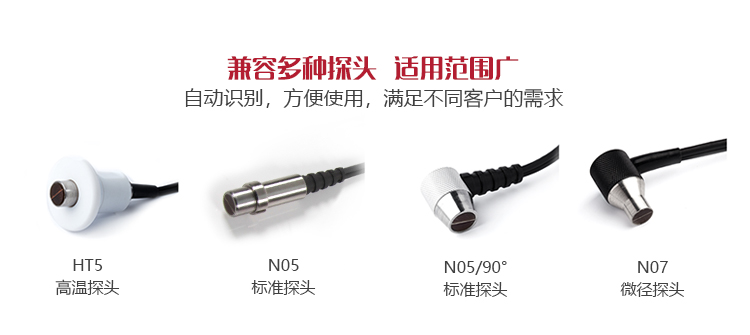 | 探頭直徑 | 測(cè)厚探頭N05直徑10MM、微晶探頭N07直徑6MM、高溫探頭HT5直徑12MM、粗晶探頭N02直徑12MM |