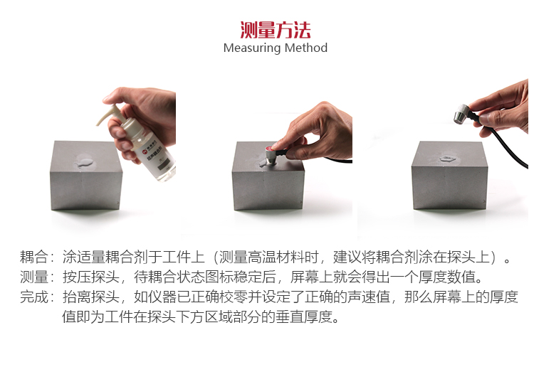 若被測(cè)體表面有大量耦合劑時(shí),當(dāng)探頭離開被測(cè)體表面時(shí),耦合劑會(huì)引起誤測(cè)。因此測(cè)量結(jié)束時(shí),應(yīng)迅速將探頭移開被測(cè)體表面。