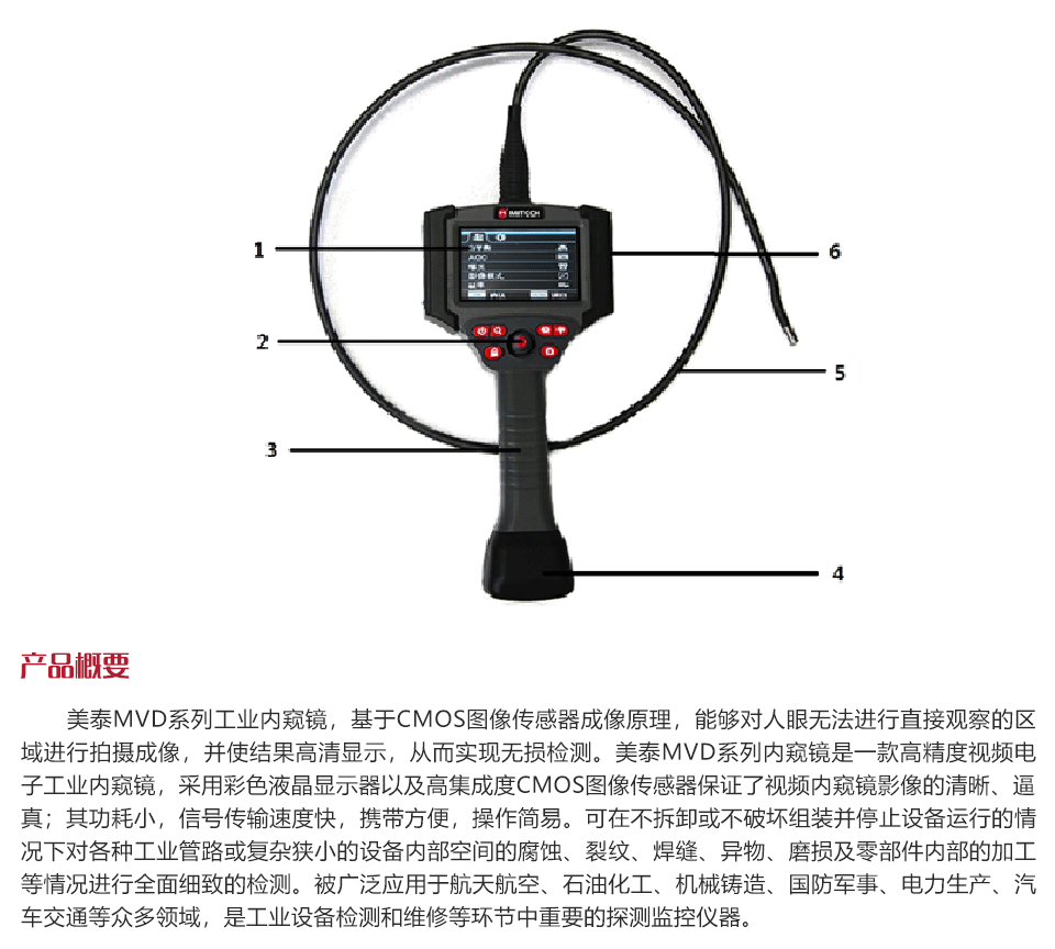 產品概述美泰MVD系列工業(yè)內窺鏡,基于CMOS圖像傳感器成像原理,能夠對人眼無法進行直接觀察的區(qū)域進行拍攝成像,高清顯示,從而實現無損檢測。美泰MVD系列內窺鏡是一款高精度視頻電子工業(yè)內窺鏡,采用彩色液晶顯示器以及高集成度CMOS圖像傳感器保證了視頻內窺鏡影像的清晰、逼真;功耗小,信號傳輸速度快,攜帶方便,操作簡易。可在不拆卸或破壞組裝及停止設備運行的情況下對各種工業(yè)管路或復雜狹小的設備內部空間的腐蝕、裂紋、焊縫、異物、磨損及零部件內部的加工等情況進行全面細致的檢測。被廣泛應用于航天航空、石油化工、機械鑄造、國防軍事、電力生產、汽車交通等眾多領域,是工業(yè)設備檢測和維修等環(huán)節(jié)中重要的探測監(jiān)控儀器。