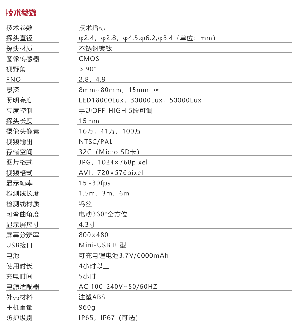 | 探頭直徑 | φ2.4,φ2.8,φ4.5,φ6.2,φ8.4(單位:mm) |