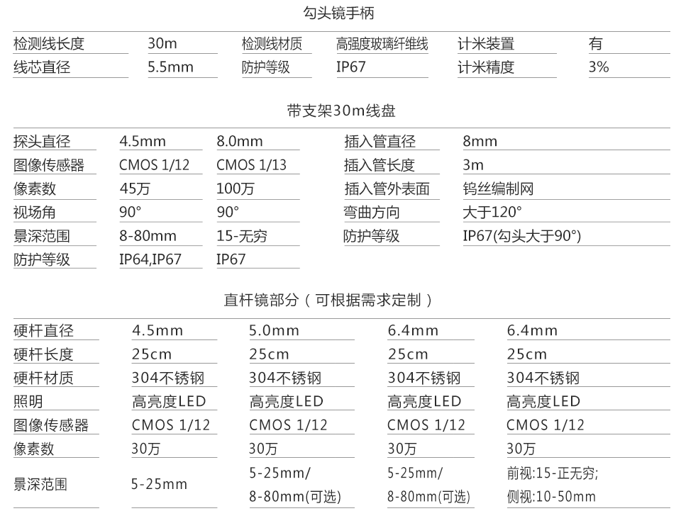 8mm鏡頭檢測手柄,配合3m軟管檢測線,360°導(dǎo)向彎曲;