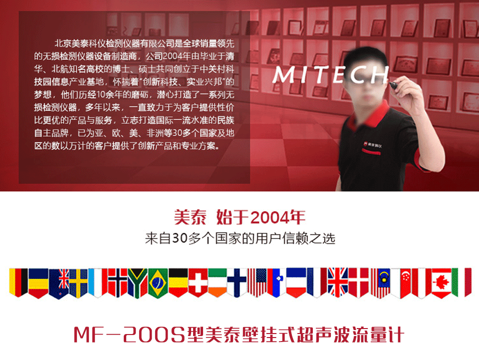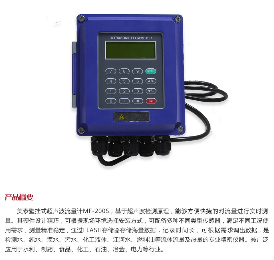 產(chǎn)品概述美泰壁掛式超聲波流量計MF-200S,基于超聲波檢測原理,能夠方便快捷的對流量進行實時測量。其硬件設(shè)計精巧,可根據(jù)現(xiàn)場環(huán)境選擇安裝方式,可配備多種不同類型傳感器,滿足不同工況使用需求,測量精準穩(wěn)定,通過FLASH存儲器存儲海量數(shù)據(jù),記錄時間長,可根據(jù)需求調(diào)出數(shù)據(jù),是檢測水、純水、海水、污水、化工液體、江河水、燃料油等流體流量及熱量的專業(yè)精密儀器。被廣泛應(yīng)用于水利、制藥、食品、化工、石油、冶金、電力等行業(yè)。