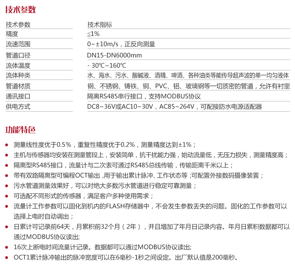傳感器溫度:外夾式:﹣30℃~90℃;高溫外夾式、插入式、管段式:﹣30℃~160℃。