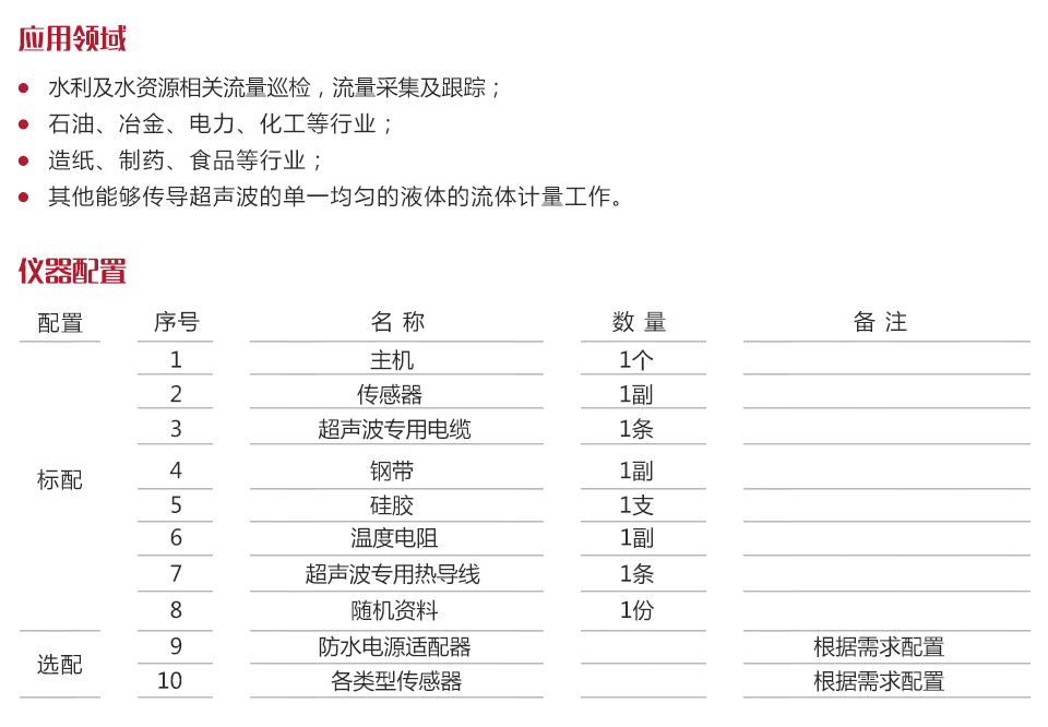 | 流體種類 | 水、海水、污水、酸堿液、酒精、啤酒、各種油類等能傳導(dǎo)超聲波的單一均勻液體 |