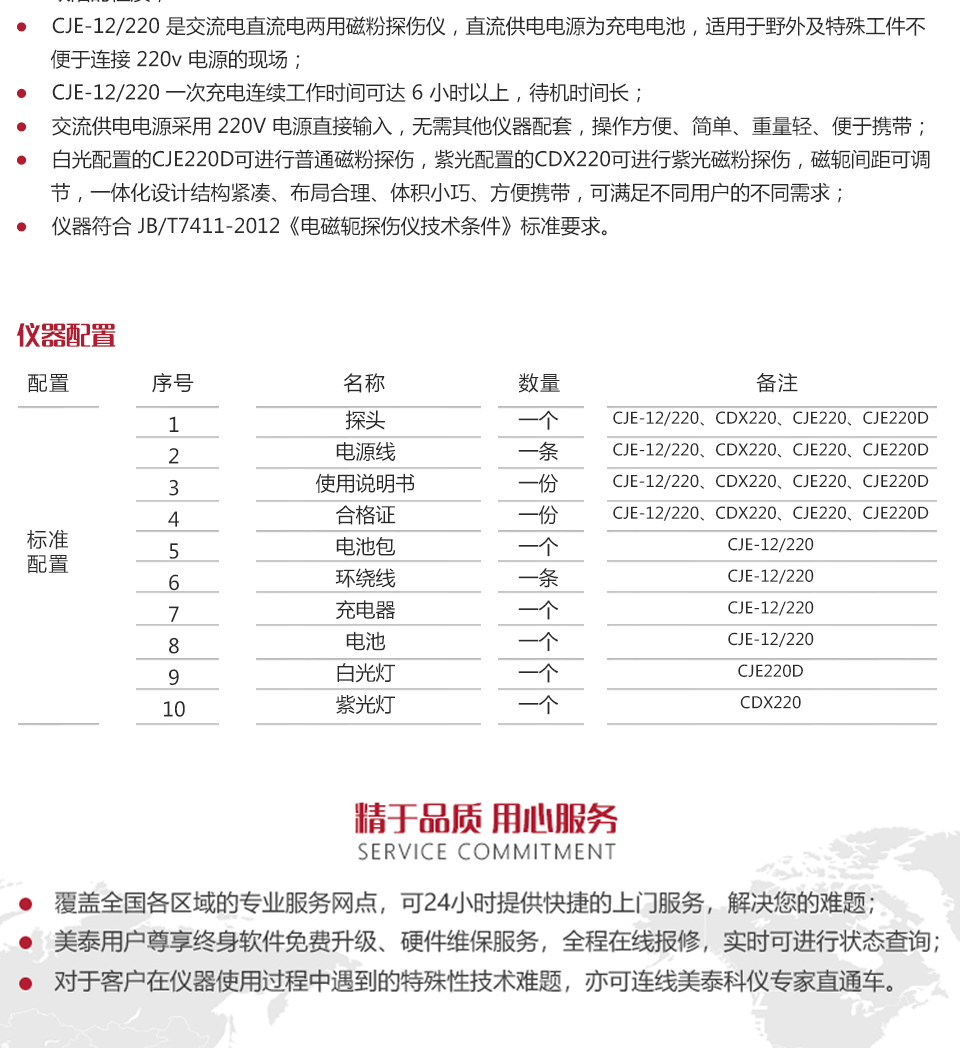 ? CJE-12/220 是交流電直流電兩用磁粉探傷儀,直流供電電源為充電電池,適用于野外及特殊工件不便于連接 220v 電源的現(xiàn)場;