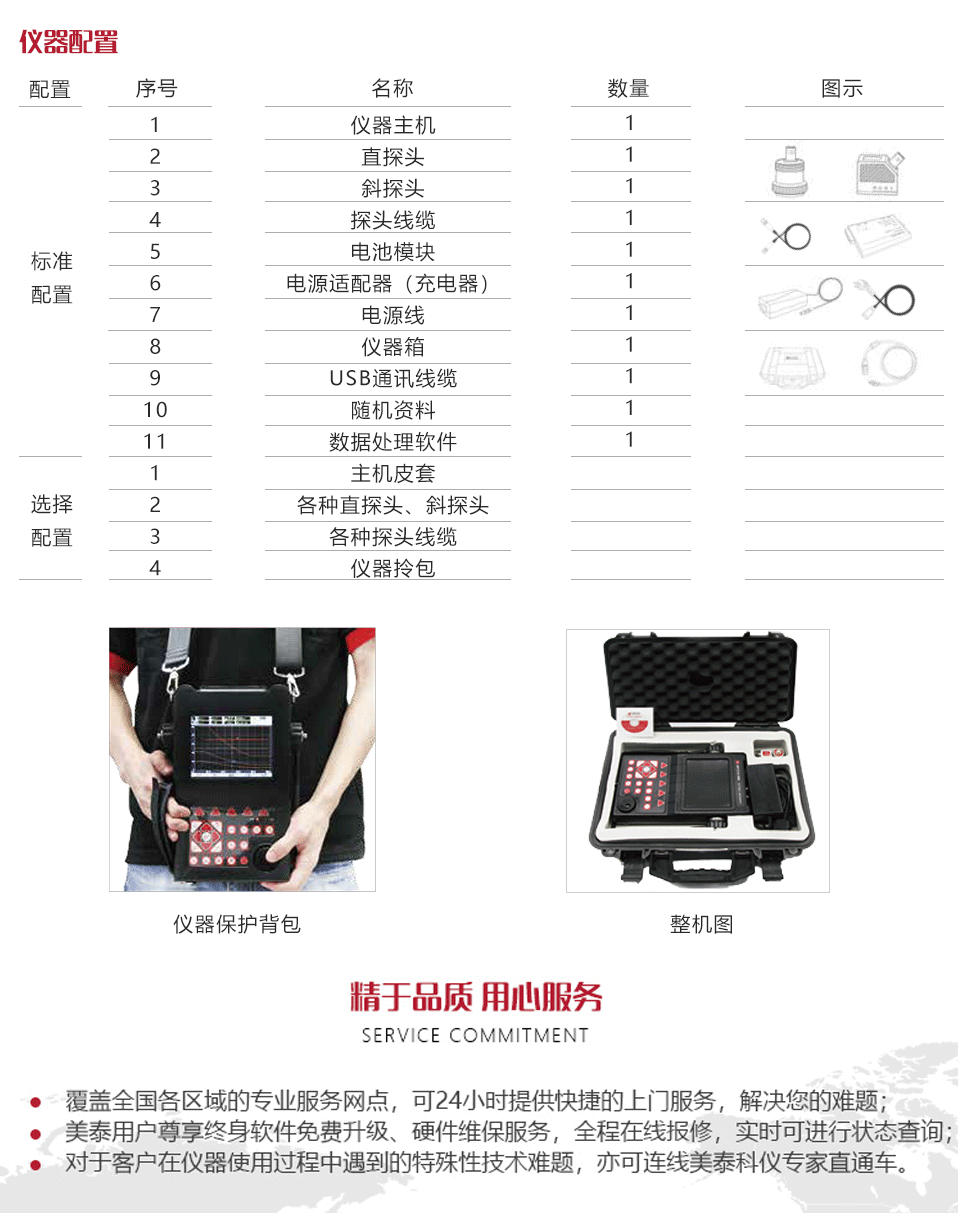 | 美泰超聲波探傷儀附有專用的隨機裝箱資料。包括產(chǎn)品合格證、保修卡、產(chǎn)品說明書、裝箱清單。隨機資料采用專用的銅版紙印制,說明書圖文設(shè)計,美觀、易懂、便于長久保存。注:美泰品牌系列產(chǎn)品的隨機資料均可登陸www.jiu1915.cn下載電子版。 | |