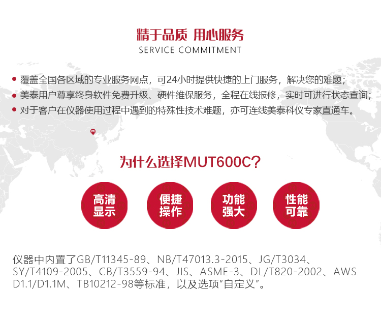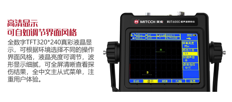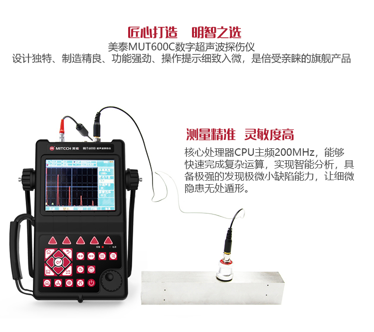 產(chǎn)品概述MUT600C數(shù)字式超聲波探傷儀基于超聲傳播原理,可精準(zhǔn)、靈敏地進(jìn)行工件內(nèi)部多種缺陷(裂紋、夾雜、氣孔等)的檢測(cè)、定位、評(píng)估和診斷。采用全數(shù)字TFT 320×240真彩色液晶顯示屏,可根據(jù)環(huán)境選擇操作界面風(fēng)格,液晶亮度可調(diào)節(jié),界面設(shè)計(jì)人性化、波形顯示細(xì)膩;可全屏清晰發(fā)現(xiàn)缺陷;單手可把持操作,曲線制作、探頭校準(zhǔn)等操作均可自動(dòng)完成;既可用以用于實(shí)驗(yàn)室,也可以用于工程現(xiàn)場(chǎng)。0-6000mm普通量程可滿足制造業(yè)、鋼鐵冶金業(yè)、金屬加工也、化工業(yè)等常規(guī)的缺陷檢測(cè)需求,低功耗設(shè)計(jì)配備大容量高性能鋰離子電池模塊可連續(xù)工作10小時(shí)以上;質(zhì)優(yōu)價(jià)廉,是實(shí)用經(jīng)濟(jì)款超聲檢測(cè)儀器的首選。