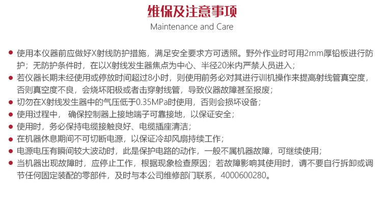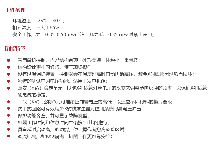 1.要經(jīng)常檢查X射線發(fā)生器中的氣壓,低于0.35MPa時禁止使用。