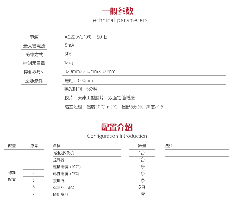 | 膠片 | 天津Ⅲ型膠片,雙面鉛箔增感 |