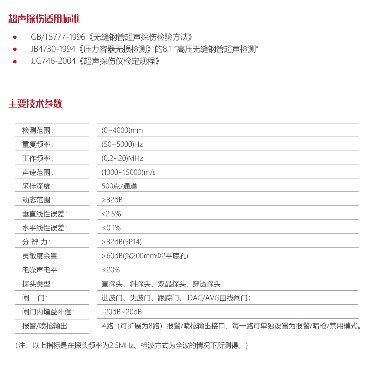 | 靈敏度余量: | >60dB(深200mmФ2平底孔) |