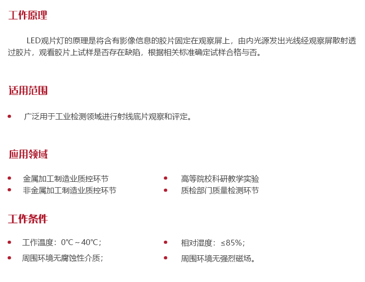 工作條件廣泛用于工業(yè)檢測領域進行射線底片觀察和評定。