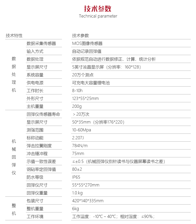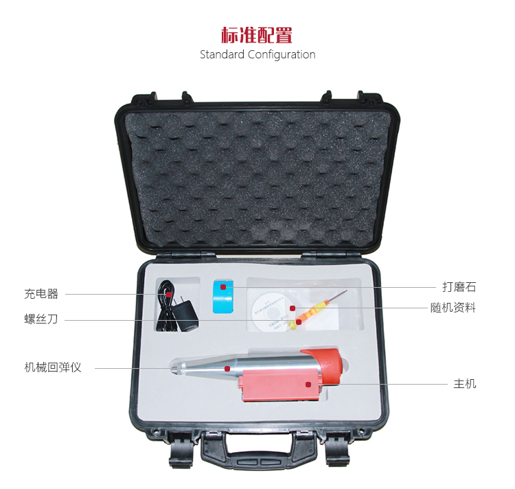 l 符合《回彈儀》(GB9138-2015)、《回彈儀法檢測混凝土抗壓強度技術(shù)規(guī)程》(JGJ/T23-2011)、《超聲回彈綜合法檢測強度技術(shù)規(guī)程》(CECS02:2005)等相關(guān)標準。